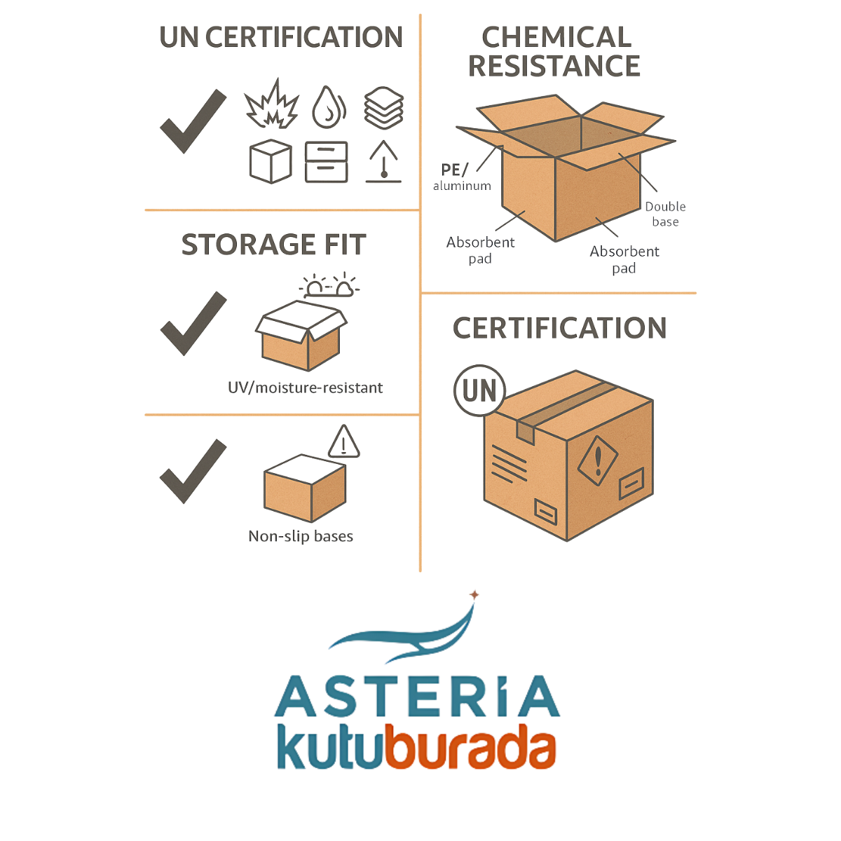 Kimya sektörü, sızıntı, reaktivite ve kontaminasyon gibi ciddi lojistik riskler barındırır. Bu sebeple, kullanılan ambalajların yalnızca fiziksel dayanıklılığı değil, aynı zamanda sertifikalı güvenlik standartlarına uyumu da önemlidir.